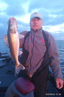 At 7:00 it was time to find a shallow reef and check out the post sunset bite. A 4 mile run to the shallows in front of Fisher's we trolled for about an hour and decided we should have stayed in the deeper water. The waves were significantly higher and the fish were no where to be found. Heading back we loaded the boat and made a beeline to my friend Mark's ice house for the night. Our plan was to catch supper, get a good nights sleep and head home in the morning. Located at Fisherman's Wharf, we stopped at the resort restaurant to eat before cleaning our walleyes. The nights special was pot roast with all the trimmings for $10, a fabulous deal considering how much food we got. A short ride to our quarters found a nice surprise, Mark had decided to drive up and stay the weekend. After cleaning nice batch of walleyes, we proceeded to solve the world's problems, something that that took till 4 in the morning. Admittedly we only scratched the surface! Here is another nice walleye we nailed. If you notice the pictures are once more lacking quality. Being too excited at the landing, I again left my camera in the car. I bought an extra camera to keep in the boat especially for my forgetful streaks however that camera was also in my car. So much for that plan! Steve took these with his fancy smart phone, not bad as I had little choice.